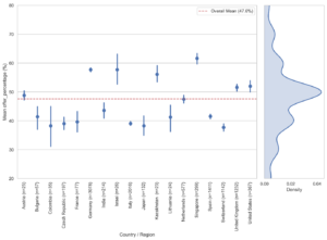 Generosity varied significantly across countries. In the Ultimatum Game, German students proposed around 60% of their endowment on average, while Italian students offered closer to 40%. Southern European countries tended toward lower offers, US subjects scored above the global mean. Even within a relatively homogeneous group like university students, cultural background seems to matter a lot.